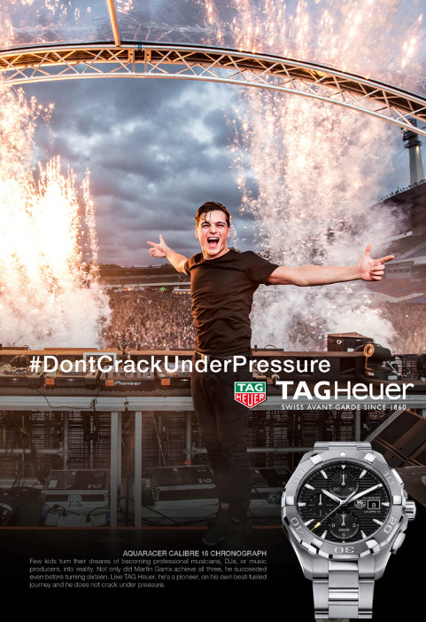 “El logotipo y los principios de TAG Heuer profesan: “Relojero suizo de vanguardia desde el año 1860″, así que nuestro ADN define claramente que tenemos que estar conectados con el futuro y con las generaciones más jóvenes. Hoy, me siento especialmente orgulloso de que Martin Garrix haya aceptado convertirse en embajador de TAG Heuer. Se suma así a Cara Delevingne, Cristiano Ronaldo, David Guetta, GEM y Li Yi Feng en Asia. Martin Garrix encarna a la perfección la filosofía #DontCrackUnderPressure de TAG Heuer y a una generación que liderará en el futuro el camino del mercado del lujo”: Jean-Claude Biver.