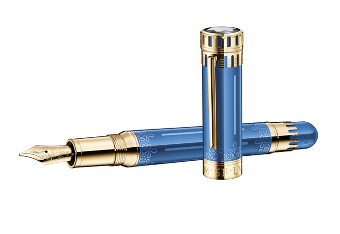 Limitada a 888 ejemplares, la pluma fuente está fabricada en cuerpo de oro sólido 750 y laca azul traslúcida, diseño inspirado en el fresco del artista florentino.