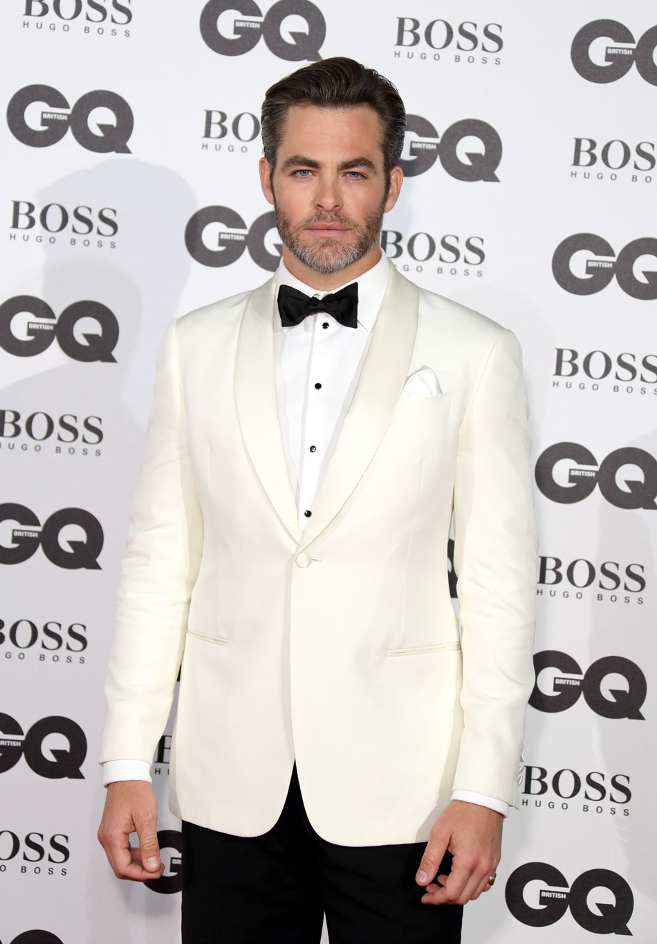Además, Chris Pine portó mancuernillas y botones para smoking en el GQ Men of the Year Awards, celebrado en Londres, Inglaterra.