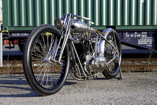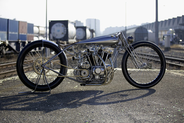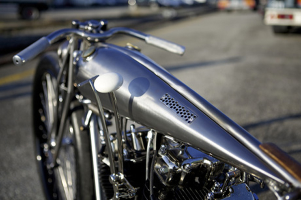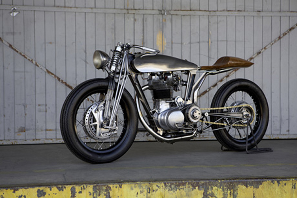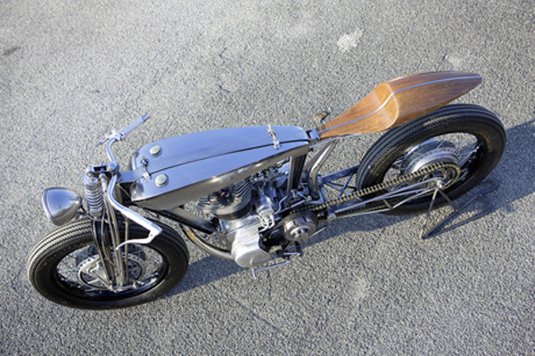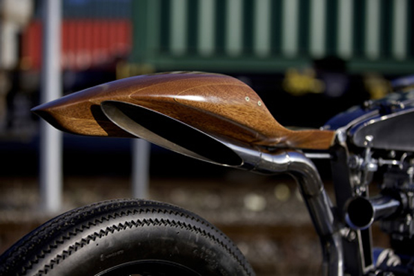 Royal Enfield: Max se enamoró del motor de este vehículo cuando lo miró en una fotografía de una motocicleta que su hermana rentó en la India, desde ahí surgió la inspiración para producir una obra de arte con cadena de bronce y frenos de tambor delanteros. Los detalles plateados del tanque y al frente del motor han sido terminados a mano y buscan contrastar con la madera del asiento.