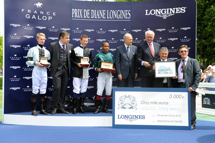 El hipódromo de Chantilly recibio´a más de de 47’000 personas para la edición 2013 del Longines Prix de Diane. Nueve carreras habían transcurrido para que sucediera la carrera más importante del mundo para yeguas: el Longines Prix de Diane. El ganador, Treve, montado por Thierry Jarnet ejecutaron los 2’100 metros en un tiempo récord de la carrera 02:03:77. Otro gran momento del deporte fue el Premio Longines Future Stars Racing, una carrera para jóvenes jinetes de 9 países diferentes, la cual fue organizada conjuntamente con las escuelas de cada uno de los participantes. Franklin Maleking (de Sudáfrica) de la Academia Jockey Gauteng ganó esta carrera. Fue presentado con un reloj Longines y recibió un equipamiento deportivo completo, mientras que su escuela recibió una beca de 5’000 euros. Con este premio, Longines tiene como objetivo apoyar a los jóvenes a través del deporte.