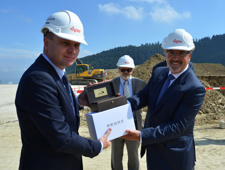 Esta edificación estará lista para el 2015, y brindará nuevas posibilidades a REUGE The Art of Mechanical Music. Asimismo, el día de la develación, Mr. Pierre Kladny, Chairman of the Board, asistió en representación al equipo de artesanos y familia corporativa de REUGE, al tiempo que brindó la bienvenida a las autoridades municipales de Ste-Croix.