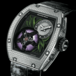 Asimismo nos presentaron una nueva referencia femenina con caja de cerámica y brazalete de oro rosa macizo, que es conocido como “Open Link” lo cual hace pensar que conquistarán a nuevos mercados, como siempre lo han hecho. Y es que cuando se habla de Richard Mille existe una altísima probabilidad de que cualquier pieza que sea presentada resulte siendo un éxito, tal como lo hemos de asegurar con el Tourbillon Flour, que deja admirar al torbellino solo una vez por hora, para posteriormente esconderle al interior de los pétalos de una Magnolia. Dicha escena se realza por el grabado y pintado a mano, pero también por su exclusividad: 30 piezas para todo el planeta. Finalmente RM presentó un reloj más para damas, que podrá ser seleccionado con platina de oro y diamantes a solicitud, mientras que el oro blanco o rosa para la construcción de la caja también obedece a su predilección.