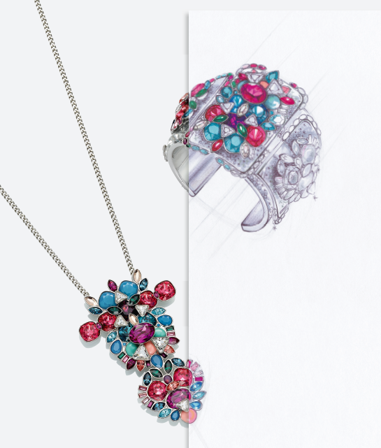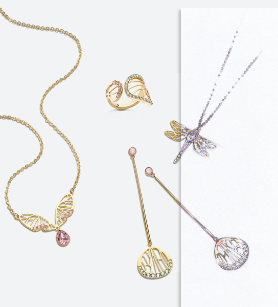 Este año, la inspiración llega de la naturaleza, de un jardín de ensueño y modernidad, dando origen a una colección totalmente orgánica en la que predominan para primavera los tonos pastel totalmente florales como los morados, lilas y turquesa muy tenues, y colores más fuertes y brillantes para el verano entre los que destacan el fucsia, el turquesa y los dorados. De igual forma, encontramos piezas que recrean flores, libélulas y mariposas cuyas delicadas formas combinan a la perfección con la paleta de colores propuesta por Swarovski.