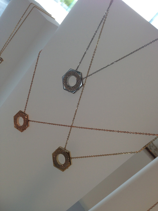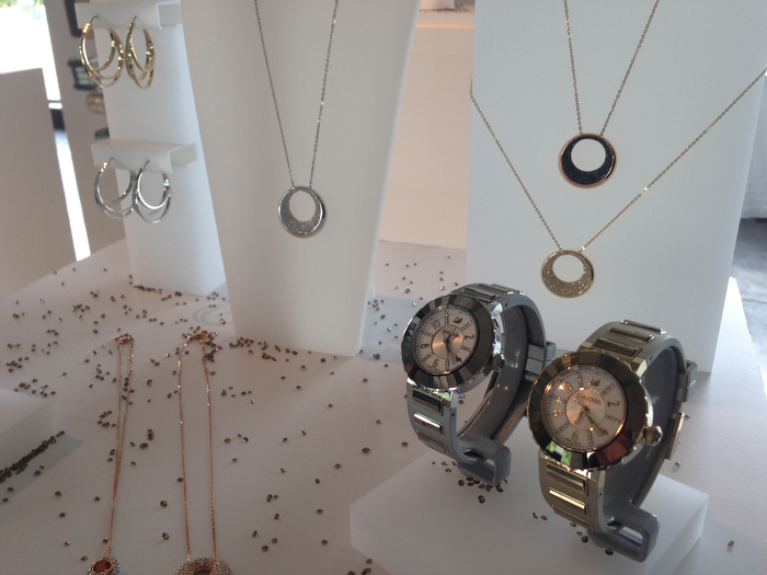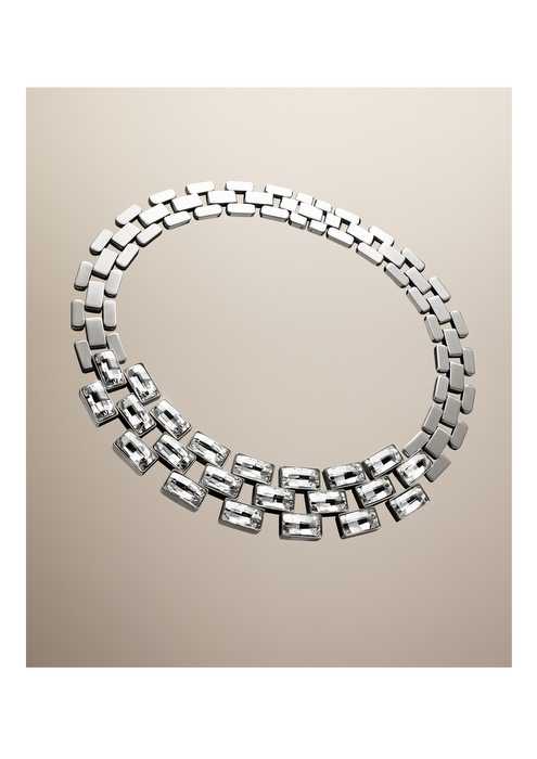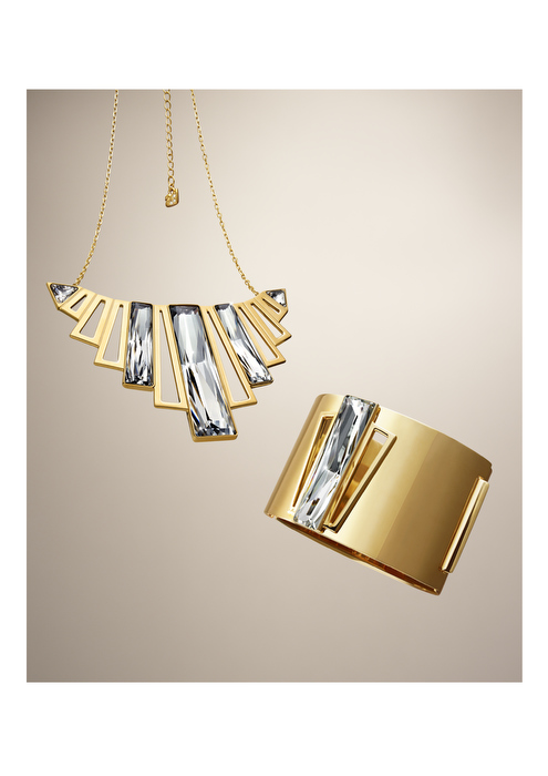 Por ejemplo, el collar Brancusi luce un engaste ligero iluminado con cristales de talla baguette, mientras que la pulsera a juego fusiona la pureza de los adornos calados de PVD en oro con el glamour de un maxi cristal en el centro. El tema Bonus combina eslabones de cristal y acero inoxidable en un diseño estructurado creando un precioso collar y brazalete que se pueden llevar con distintos looks.