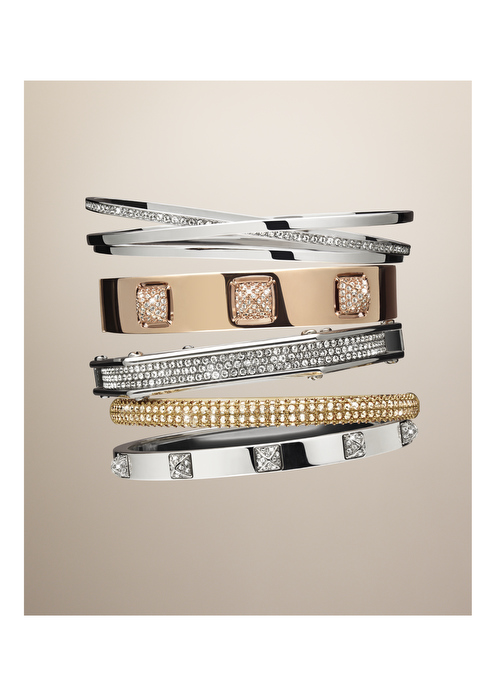 En los brazaletes Spiral, Bolt y Tactic, los cristales pavé aportan un toque de feminidad a las líneas limpias, piezas fantásticas para mezclar y contrastar distintos metales.