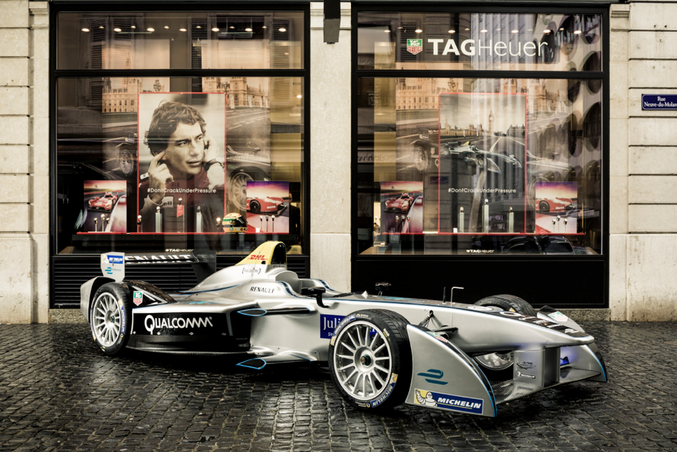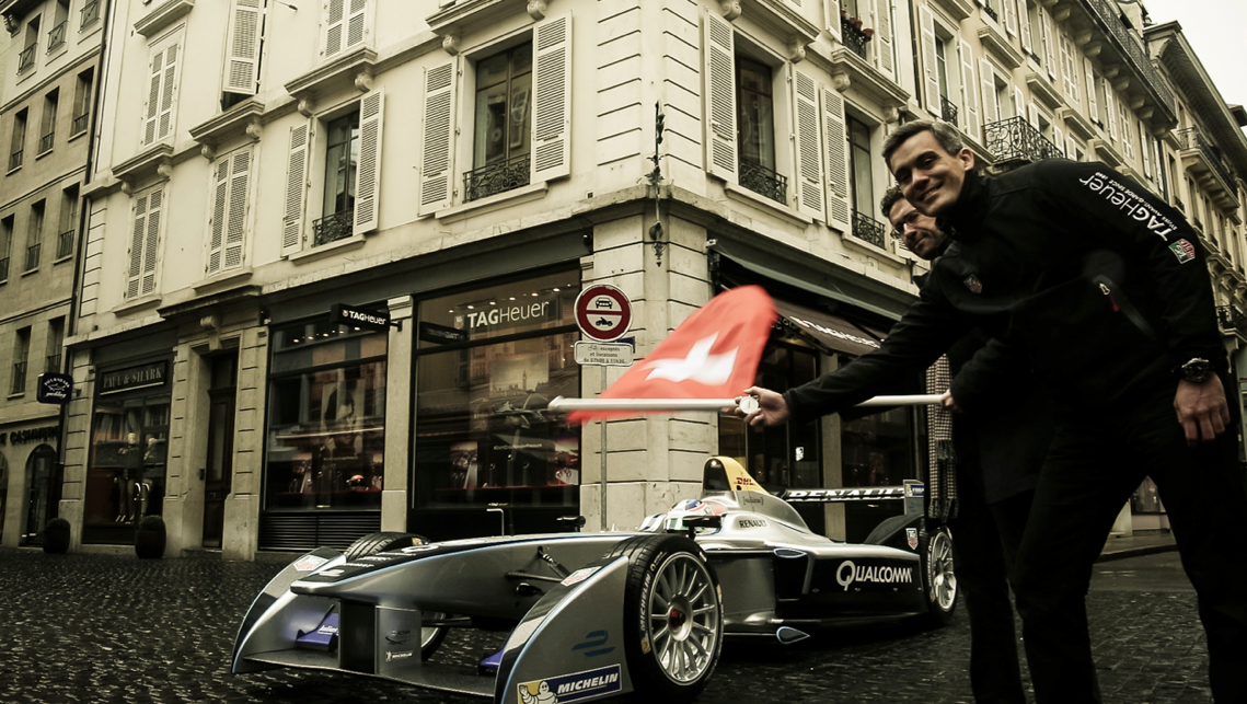 Del Calendario actual de la Formula E no aparece ninguna fecha en Suiza, por lo que Jean-Claude Biver, CEO de TAG Heuer, ha decidido empezar a calentar motores mediante el traslado de un bólido monoplaza eléctrico a la ciudad de Ginebra, además de situar a la piloto suiza Simona de Silvestro en un photoshooting frente al emblemático Jet d´Eau (chorro de agua) y junto a la boutique de la marca ubicada en el corazón ginebrino.