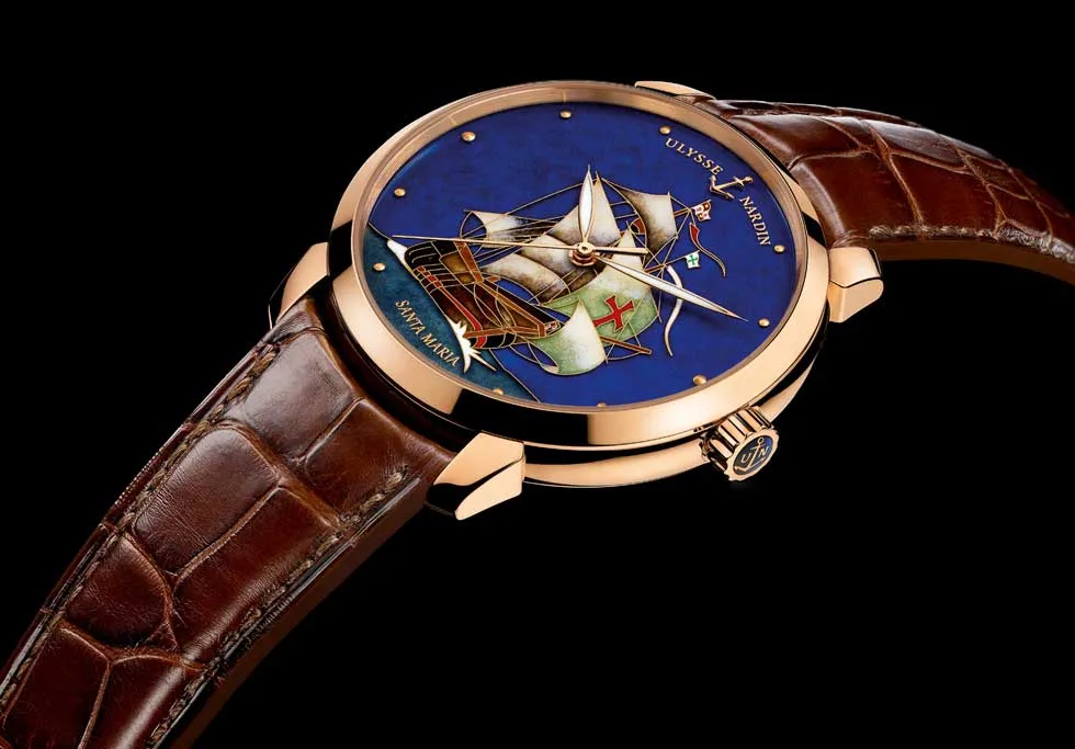 … Santa María, una verdadera obra de arte de inusitada precisión, recuerda las aventuras de esta grandiosa embarcación. La tecnología, así como el precioso trabajo de esmaltado cloisonné en la carátula, rinden un tributo muy especial a la majestuosa Santa María. Mayor que sus hermanas -en la expedición que realizara Cristóbal Colón en 1492-, esta nave ha sido motivo de inspiración para la cristalización del Classico Santa María Edición Limitada, que late al ritmo del calibre UN-815 provisto del certificado COSC, y que encarna la aventura y el descubrimiento, así como la resurrección de una técnica artística que requiere más de 50 horas de trabajo.
