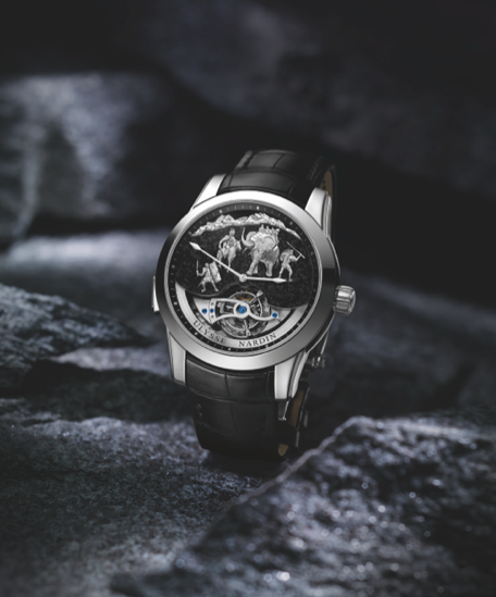 Hannibal Minute Repeater Westminster Carillon Tourbillon Jaquemarts: un repetición de minutos con cuatro timbres, los cuales harán sonar el tiempo a medida de rendir un homenaje al general cartaginense. En español le conocemos como Aníbal, quien buscó hacerse del control de Roma durante la segunda Guerra Púnica, encuentro que llevaría a cabo gracias a un ejército de elefantes que le alzó con la victoria. La pieza se presenta en platino y carátula genuina de granito.