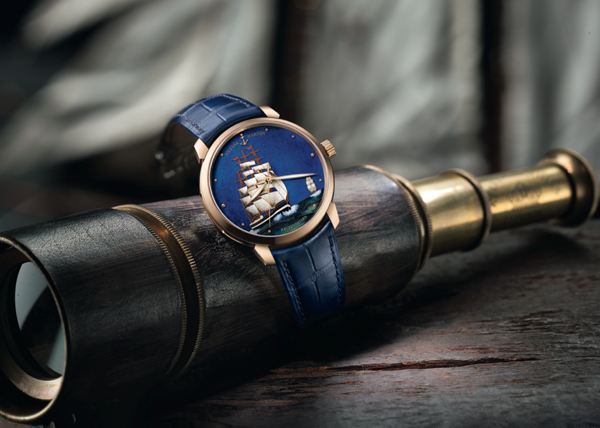Clássico Kruzenshtern: una pieza que año con año estamos condicionados a admirar es la que se presenta en el emblemático “caso” Classico, la cual cuenta con la particularidad de que la carátula exhibe la imagen de la célebre embarcación a la que se hace alusión. Limitado a edición de 30 piezas por oro blanco y rosado, el reloj cuenta con certificado de cronometría y 42 horas de autonomía, las que harán que la historia del navío retorne en el tiempo y viva nuevamente la fecha de 1926, año en el que zarpó por vez primera.