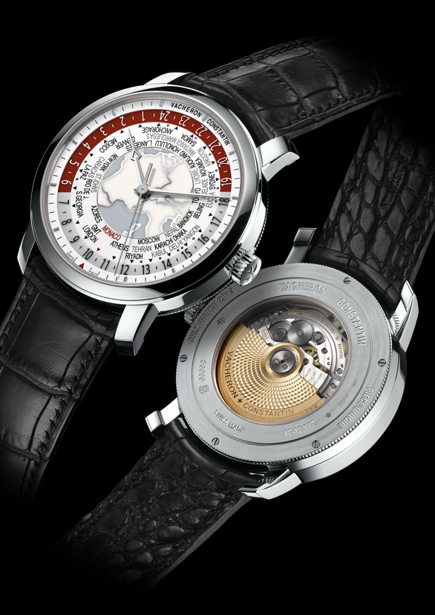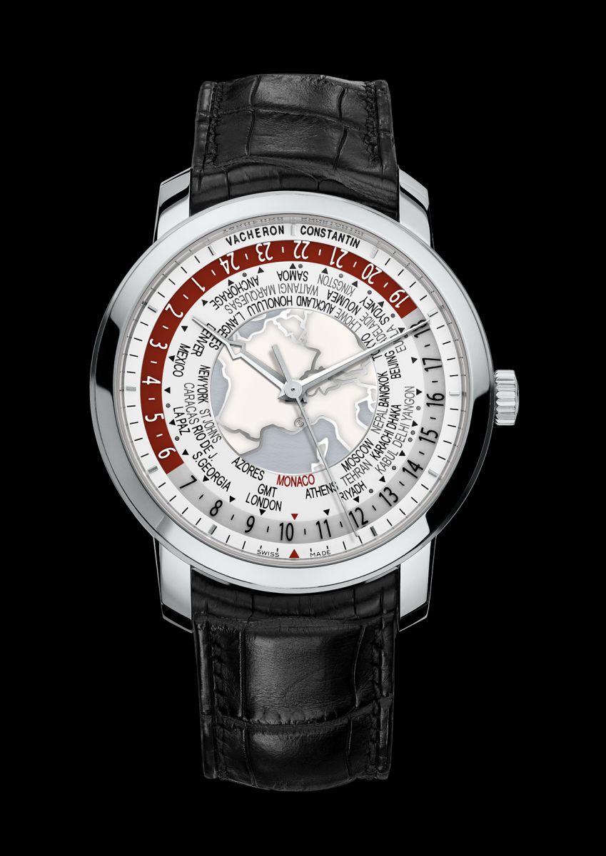 Este reloj que muestra 37 zonas horarias (y no las 24 habitualmente encontradas en los relojes de viajero) tiene establecida a Mónaco como la ciudad que representa el GMT +1 (en la versión normal el GMT +1 está representado por Ginebra).