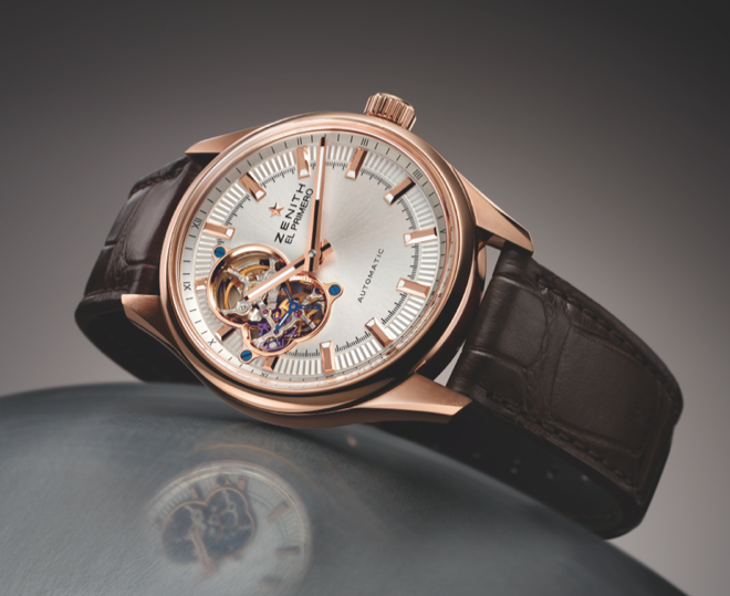 El Primero fue, en 1969, el primer y único calibre de cronógrafo integrado y remonte automático de alta frecuencia: 36,000 alternancias por hora. Tras la crisis del cuarzo, el legendario movimiento fue restituido en la producción, y en los años siguientes se construyó el calibre Elite ultraplano de cuerda automática, asimismo, para el nuevo milenio LVMH fijó sus ojos en Zenith y adquirió la compañía, invirtiendo una suma importante de recursos en la división de desarrollo de producto e innovación de materiales, que posibilitarían la creación de colecciones de relojería de la más alta talla, como la línea Academy, el “Open concept” para la colección El Primero, la recuperación de la línea Pilot en el 2012 o los materiales incluidos en El Primero Lightweight, como los son el silicio, la fibra de carbón y el titanio utilizado en los puentes del movimiento.