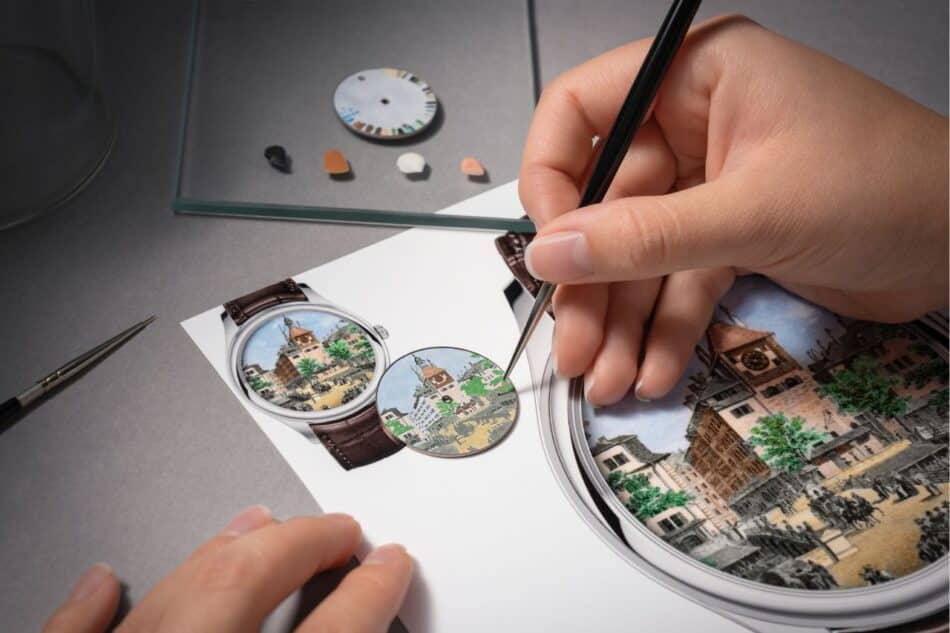 Este proceso puede tomar decenas de horas, ya que cada capa de pintura debe secarse cuidadosamente antes de aplicar la siguiente. El resultado es una obra única, que convierte al reloj en una pieza irrepetible cargada de emoción y sensibilidad.