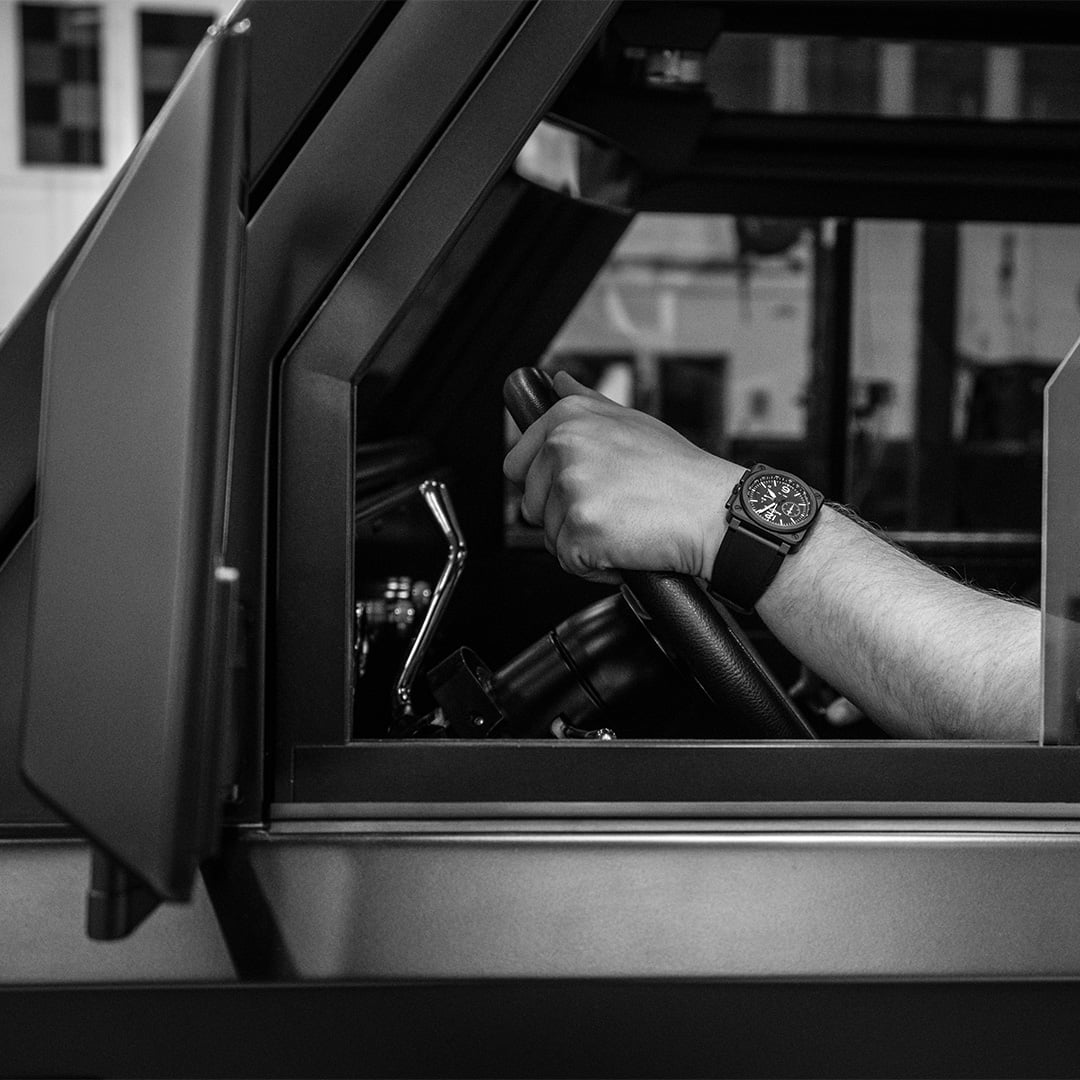 Cuando Bruno Belamich, director creativo y cofundador de Bell & Ross, vio el Bollinger B1 por primera vez, se dijo a sí mismo: “Si el BR 03 fuera un automóvil, ¡éste sería! El Bollinger B1 es para el automóvil lo que el BR 03 es para la relojería: un objeto 100% utilitario diseñado por ingenieros para los amantes de las emociones extremas.