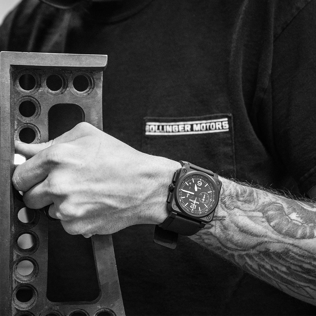 Mark Foster, director de marca de Bollinger Motors, agregó respecto a los relojes Bell & Ross: “Hermosos instrumentos. Los sutiles detalles, superficies y texturas son increíbles. Me encanta la inspiración de la aviación vintage en la marca Bell & Ross. El peso se siente sólido, sustancial, como si pudieras saltar desde un avión, o un camión, sin preocuparte por eso”.