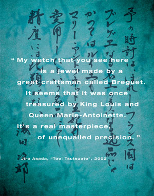 “My brother left his family a gold watch wich, apart from its intrinsic worth in gold, was endowed with the value of its age. It was bought for one hundred francs by my grandfather Bastien Lafleur in 1804, from Breguet, the greatest watchmaker of the period”: Max Jacob, Filibuth ou la montre en or, 1922.