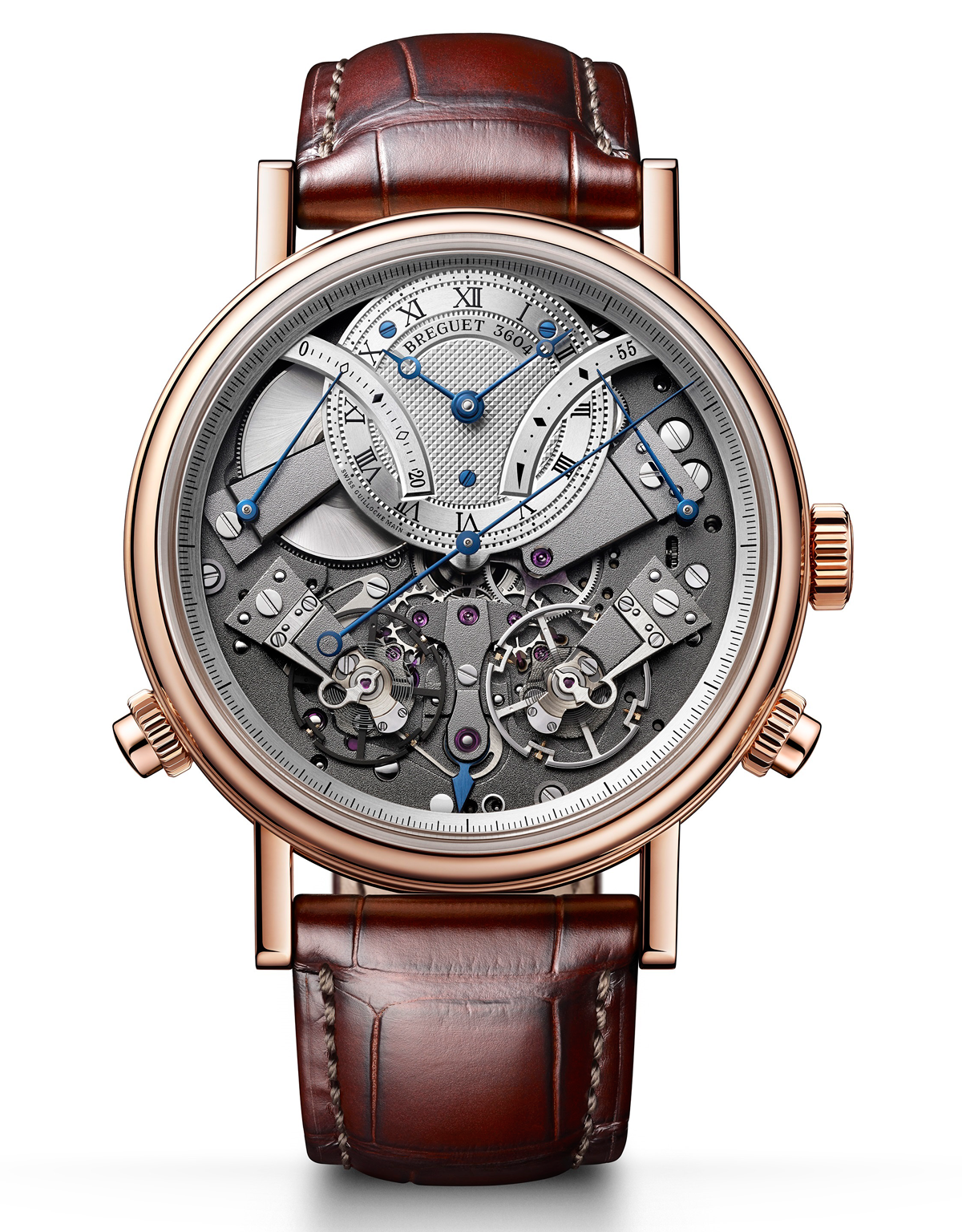 La revolución del mecanismo de cronógrafo independiente y autónomo ha llegado, ¿y cómo es eso? se preguntará usted. Resulta que los relojeros de Breguet se dieron a la tarea de independizar al módulo del cronógrafo y plantear una solución paralela que corre a alta frecuencia, una diferente a la del reloj en general: el mecanismo del reloj, calibre 580DR, late a 3 Hz, mientras que el sistema de cronógrafo es un “reciclador de energía” inspirado en la histórica referencia 4009 de la Casa. Un ingenioso sistema que no pierde el impulso-fuerza que el usuario ejerce en el pulsador para arrancar el crono. Conózcalo a fondo, AQUÍ.
