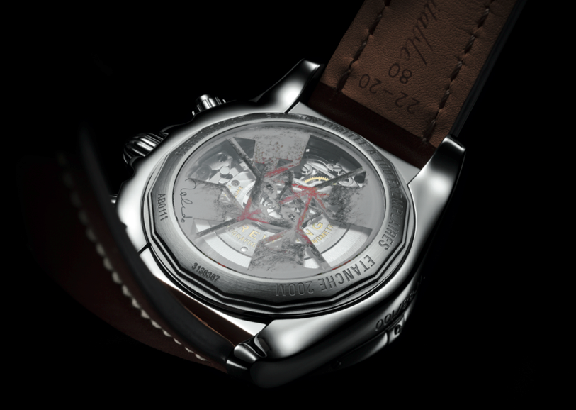 Una pieza de suma importancia para las colecciones de Breilting, su estética atemporal y decididamente deportiva alberga un movimiento de cronógrafo de manufactura calibre B01, primero en la construcción de calibres independientes por parte de la Casa. Asimismo, la hermeticidad de la pieza, garantizada hasta 500 metros, cuenta con prestaciones superiores a las normatividades oficiales de buceo, sin siquiera ser un reloj específico para la disciplina. Asimismo su fácil lectura y escala taquimétrica entregan al piloto profesional todas las indicaciones que pudiera requerir. Finalmente, su caja de acero –de 44 mm– protege por completo al motor de la pieza, mismo que presenta una autonomía de hasta 70 horas de reserva de marcha a una frecuencia de 28,800 alternancias por hora, vibración que da vida a las horas, minutos, segundos, cronógrafo de 1/4 de segundo con un par de totalizadores, además de un siempre funcional fechador en punto de las 4:30 horas. Para esta edición Breitling ha destinado una limitación de 100 ejemplares, que presentarán –en su fondo– el detalle del grabado realizado por Francisco Toledo.