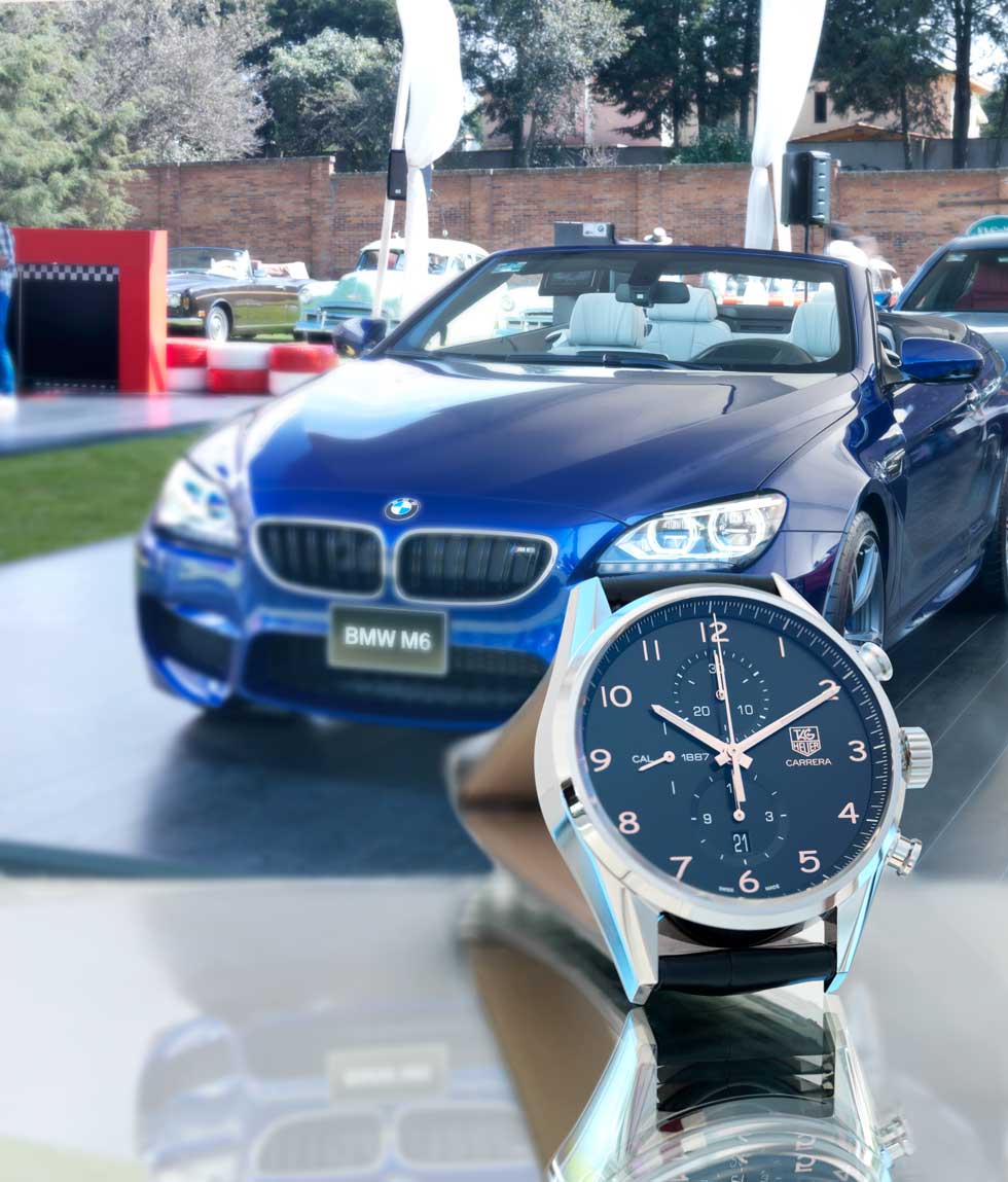 - Carrera Calibre 1887 Chronograph Rose Gold Colored Movimiento: automático calibre 1887 Frecuencia: 28,800 a/h Funciones: horas, minutos, segundos; fechador, escala taquimétrica y cronógrafo Caja: 43 mm de acero / BMW M6 Convertible Motor V8 de 560 CV / 680 Nm Velocidad máxima: 250 km/h (gobernada) Aceleración 0 – 100 km/h: 4.3 seg