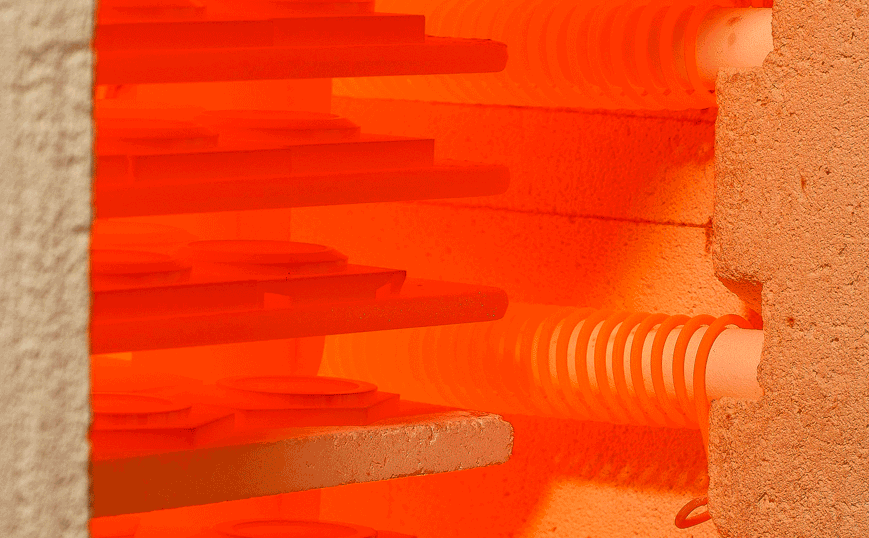 - 5. Limpieza con arena. Se remueve el material cerámico requemado después del grabado y el perforado. Esta operación se realiza por chorro de arena, acción que suaviza los bordes y homogeneiza el aspecto de la superficie.