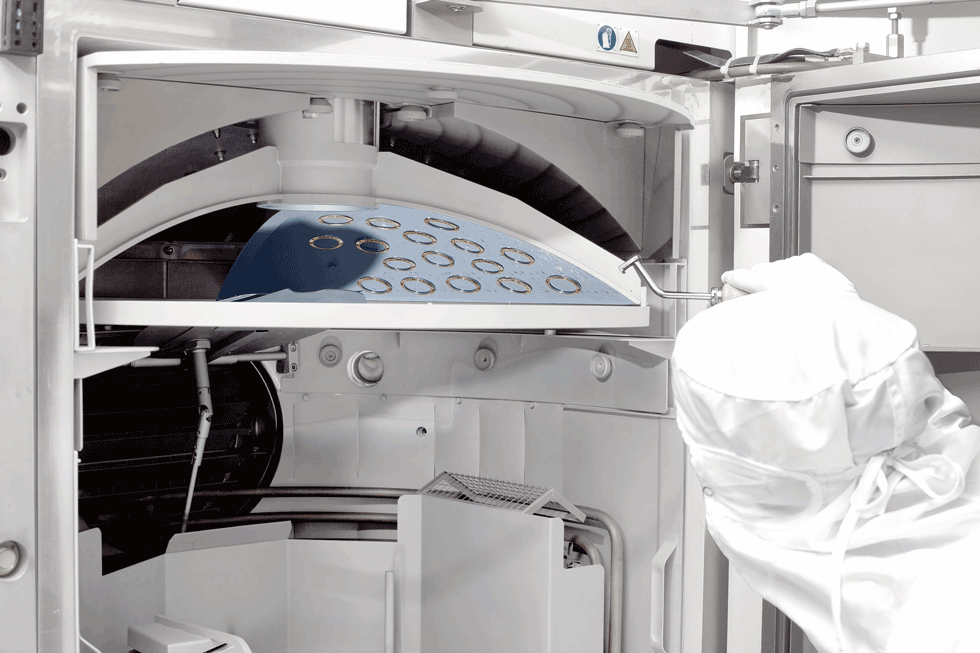 - 2. Preparación del anillo de cerámica. Los anillos sinterizados se trabajan con máquina, hasta conseguir su geometría final. El grosor, los diámetros, las formas especiales o el hueco para la cápsula SLN, se obtienen mediante herramientas de diamante.