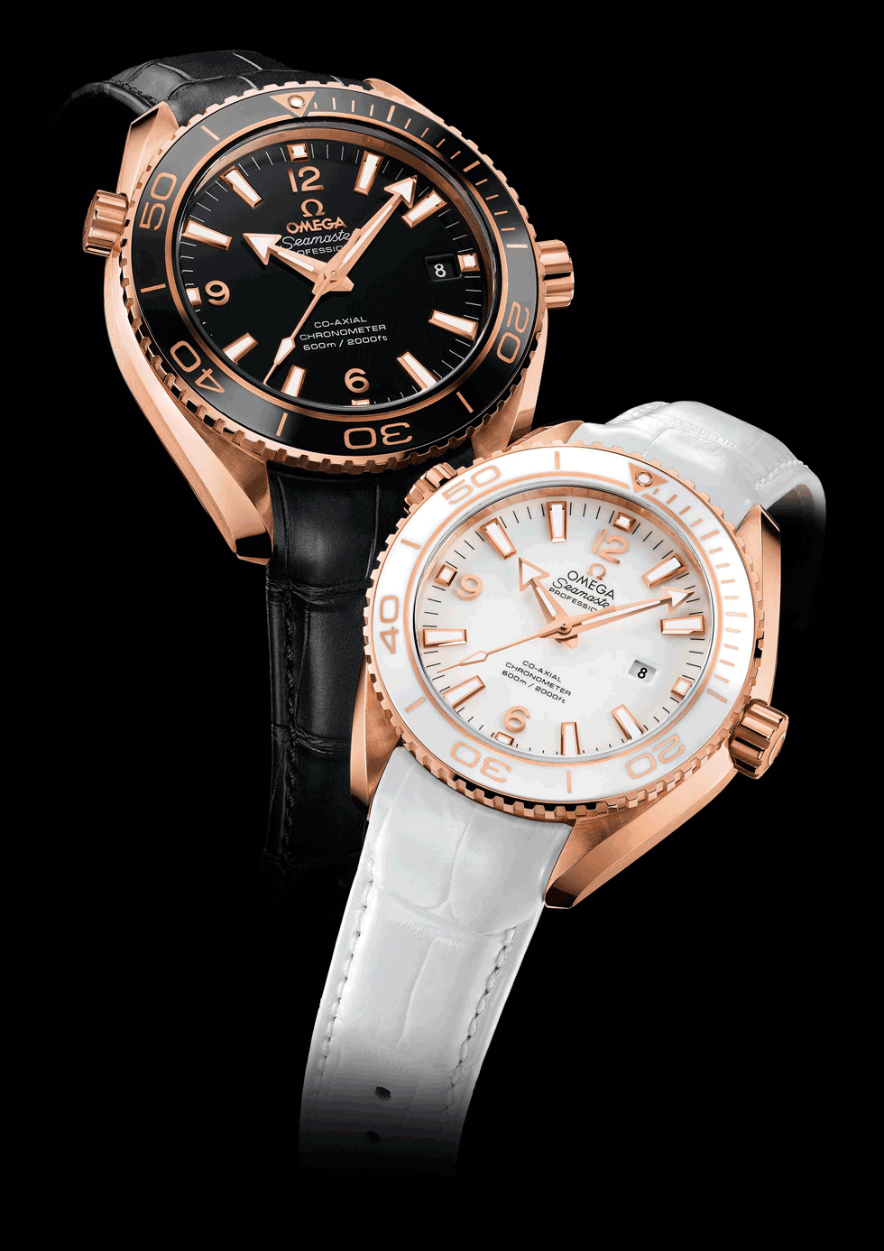 Al igual que en el resto de los modelos de la colección Planet Ocean, los Seamaster con CeragoldTM están dotados de funciones para submarinistas profesionales. Para empezar ofrecen una hermeticidad de 600 metros, un bisel giratorio unidireccional, y una válvula de escape de helio. Los índices aplicados en oro rojo de 18 quilates tienen revestimiento de Super-LumiNova® blanco que emite una luz azul, así como las agujas pulidas y facetadas elaboradas en oro rojo de 18 quilates. Por su parte, la aguja de los minutos emite una luz verde como la que emana del punto en el bisel de inmersión. Es gracias a esta función que los submarinistas controlan rápida y fácilmente el tiempo transcurrido.