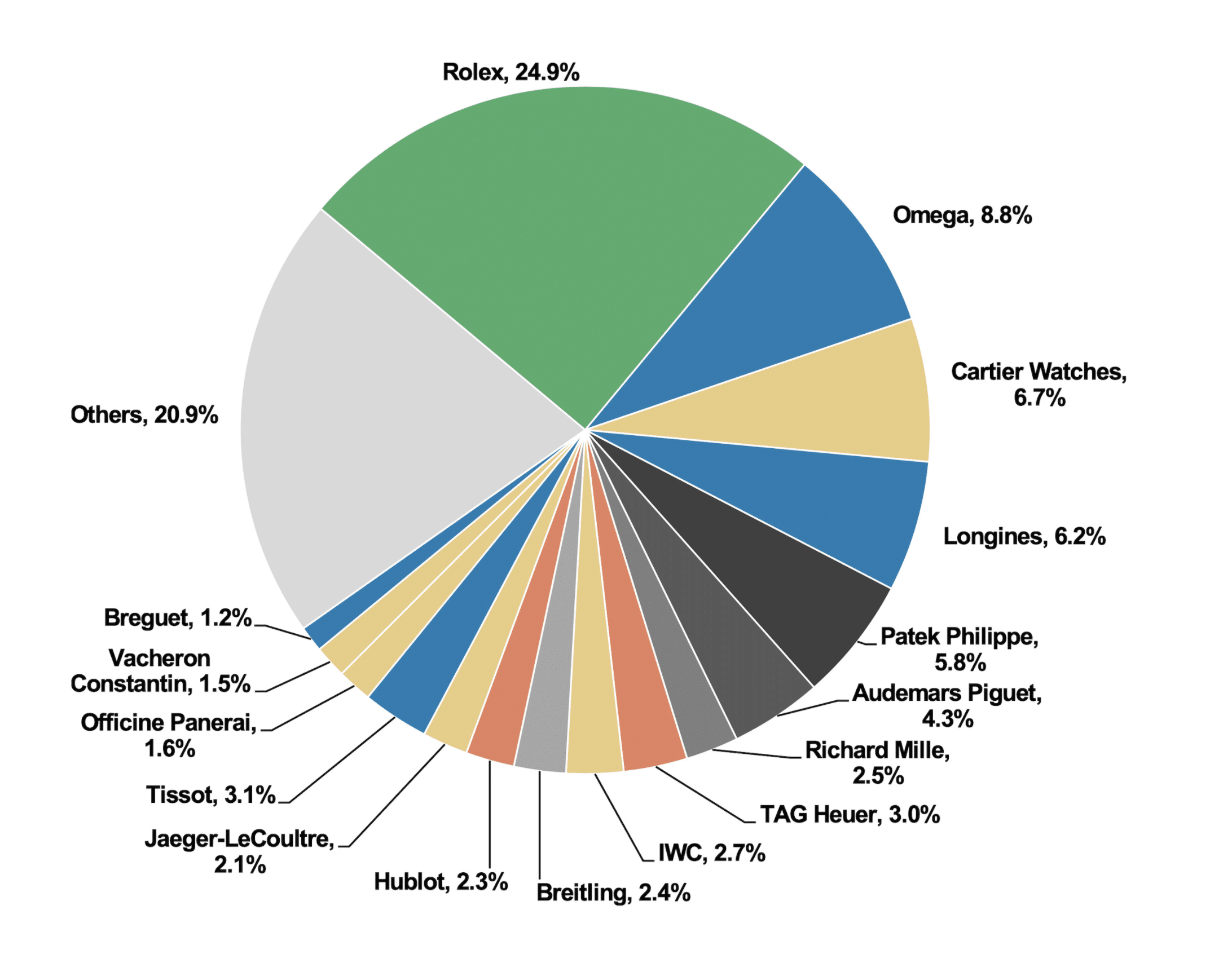 Nota: las 10 marcas de relojes líderes suizas, por sí solas, representan el 68% del mercado.