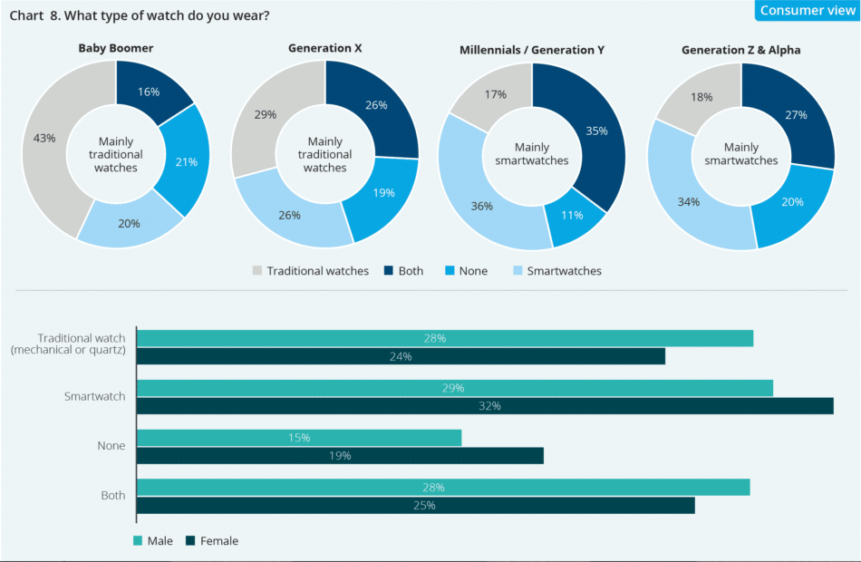 Igualmente significativa es la paridad de interés entre hombres y mujeres. Por primera vez, el deseo de comprar un reloj es igual de fuerte en ambos grupos, abriendo un horizonte de crecimiento donde las mujeres y la Generación Z serán las grandes protagonistas del futuro.