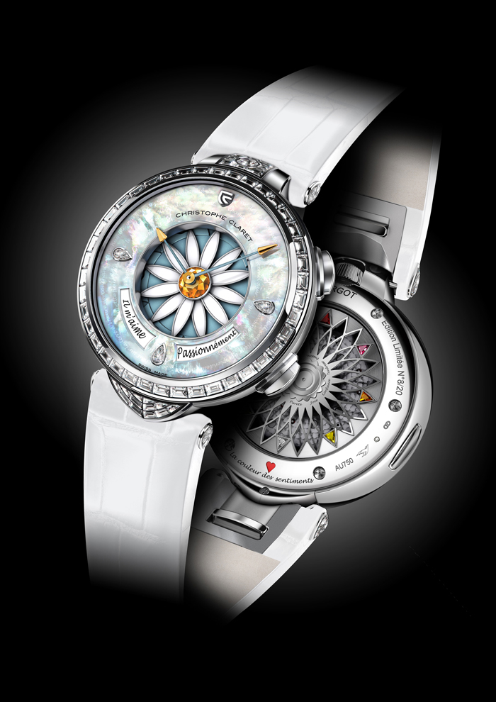 La idea no es sacar el lado cursi a la hora de escribir, pero lo que ha realizado Christophe es sin duda una de las complicaciones femeninas más impresionantes jamás vistas por la prensa especializada que, aún así no serviría para nada, ¿o sí? Imagínese que su concepto relojero desea desafiar una y otra vez lo inexplicable, su ADN lo inspira a ir hacia delante realizando mecánicas que le permitan cumplir el sueño de jugar póquer en la muñeca, de girar una ruleta o de desojar una margarita; finalmente la solución es lúdica y atractiva, pero compleja en su mecánica, que ayuda a descifrar algunas otras incógnitas en el camino… “Me quiere, no me quiere”, mediante un juego de pulsadores ligado a la acción natural de ejercer presión en ellos, la selección al azar de los pétalos que desoja el mecanismo nos entregará una respuesta en la carátula. El mecanismo de predicción a la decisión del hombre con respecto a sus sentimientos hacia la mujer es lo que resulta una proeza, además, estamos hablando de Christophe Claret (amo de la sonería) así es que cada vez que se presiona el pulsador, suena un timbre distinto y cristalino que señala de forma sonora el ritmo del juego, lo interesante también es que el martillo no golpea de manera tradicional a los timbres catedral, sino que efectúa un recorrido en vertical que además se puede ver mediante una ventanilla a las 8 horas. La primea complicación dedicada a la mujer, decide CC, y está en lo correcto, aunque el número de piezas (731) nos invitaría pensar en una gran complicación con autonomía de 72 horas de reserva de marcha, mi apuesta va para el GPHG en complicación femenina. De “CC” también debemos mencionar el Maestoso, que cuenta con un mecanismo de “detent escapement” y una frecuencia de 3 Hz, más de 750 piezas para su movimiento.