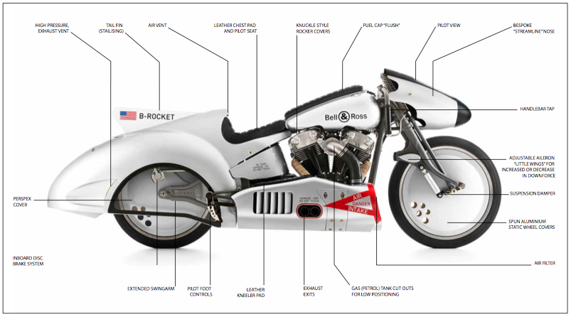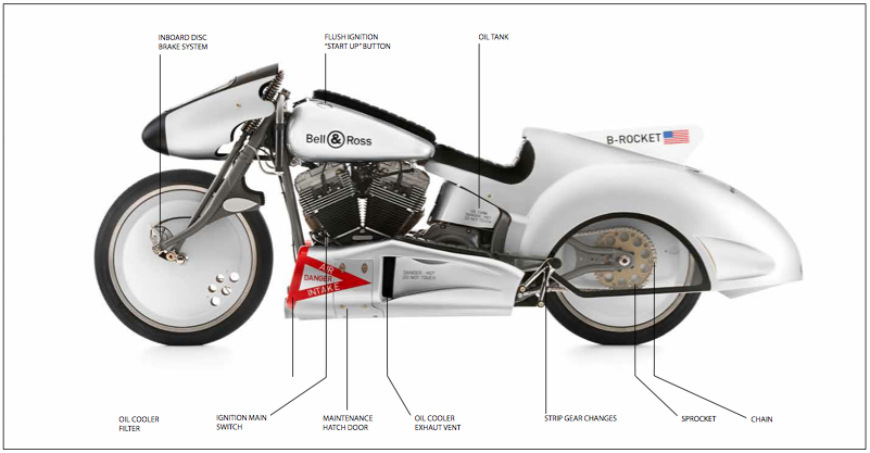 Propulsada por un cohete estadounidense que lleva por nombre: B-Rocket y por apellido Harley Davidson, pero que incorpora un corazón Bell & Ross...