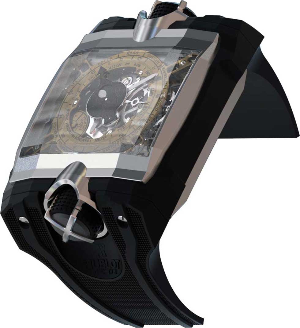 - Hublot Antikythera Funciones: horas, minutos; tourbillon volante sin rodamiento de bolas y pequeño segundero, edición limitada a cuatro piezas, uno solo a subasta a favor del Museo de Atenas Sueño de Jean Claude Biver