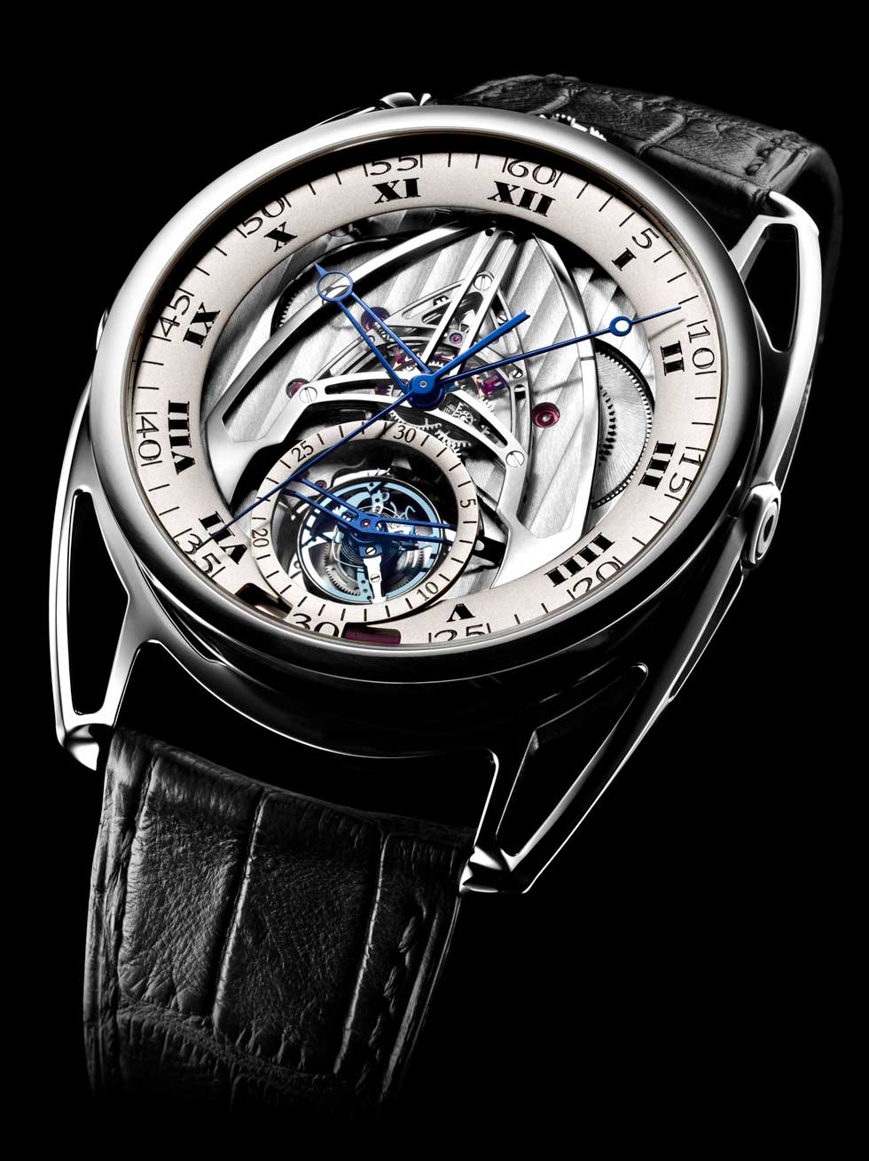- De Bethune DB 28 ST Funciones: horas, minutos; tourbillon con segundero saltante (30 seg) Sueño de David Zanetta & Denis Flageollet