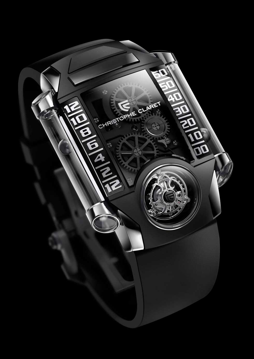 - Christophe Claret X-Trem -1 Funciones: horas y minutos (al costado de la caja); segundero pequeño en la jaula del tourbillon Sueño de Christophe Claret, Frédéric Richard y Olivier Randin