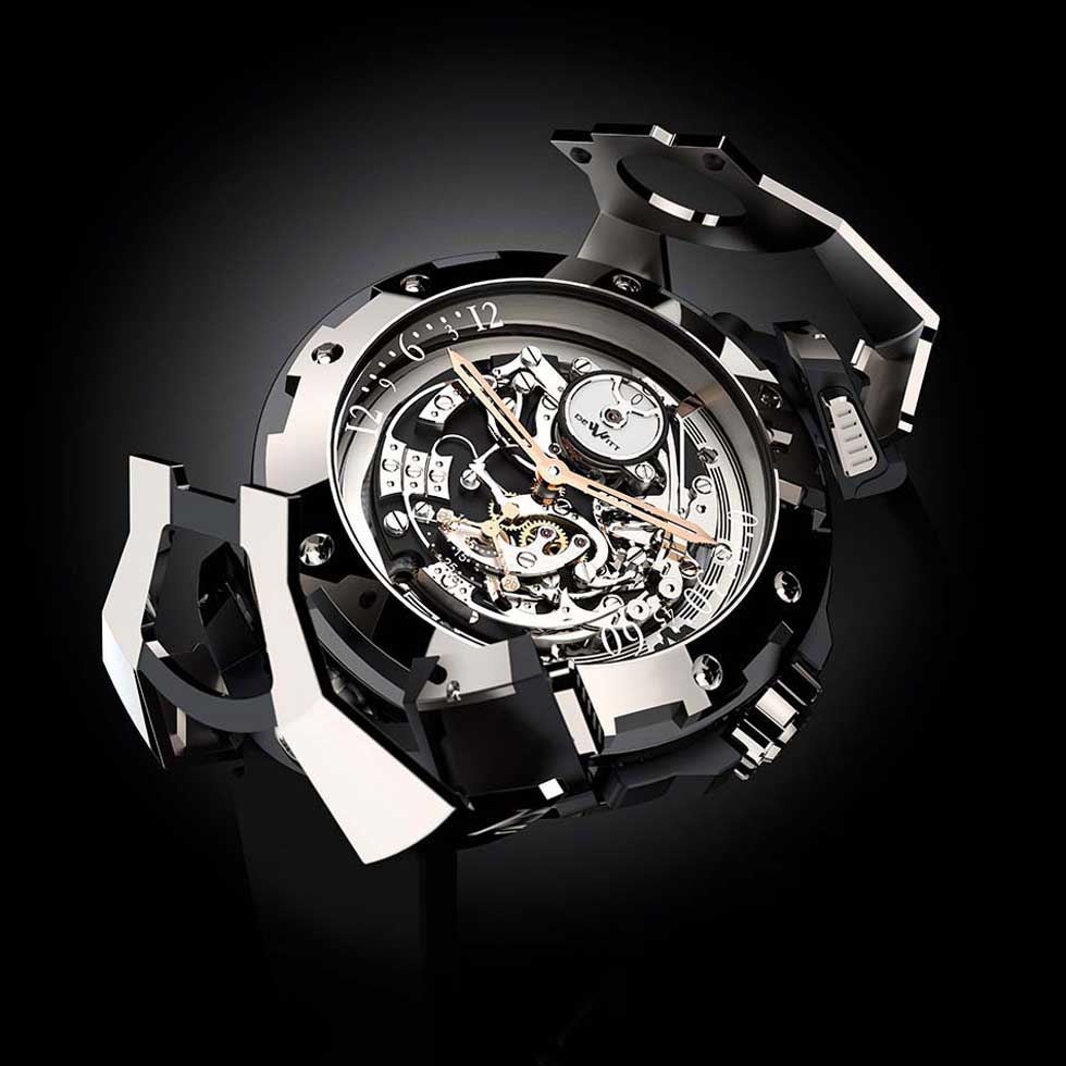 - DeWitt X-Watch Funciones: horas, minutos y segundos; cronógrafo y reserva de marcha, reversible con dos carátulas Sueño de Jérôme DeWitt