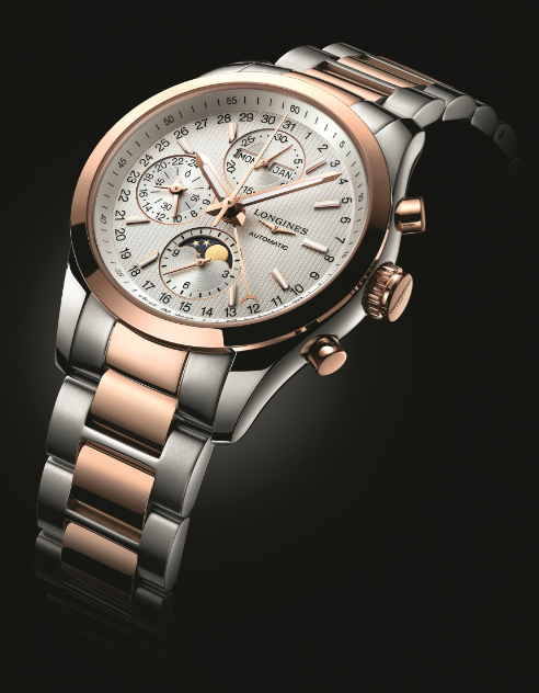 - CLASSIC CONQUEST MOONPHASE de acero y chapa oro rosa de 18 quilates.