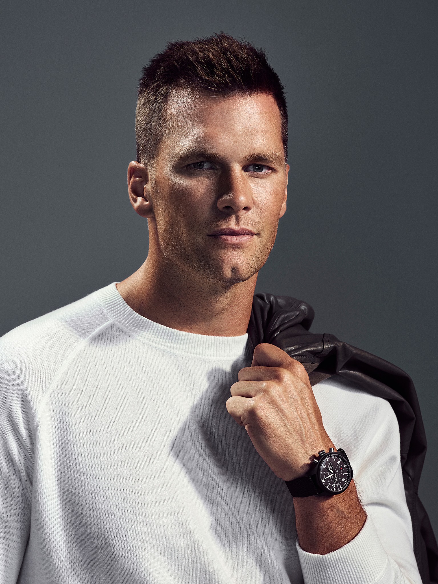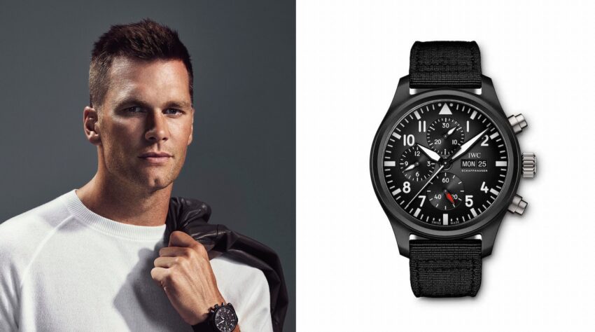 Tom Brady es amante y coleccionista de la haute horlogerie. Su colección de relojes incluye varios modelos de IWC, entre ellos el Reloj de Aviador Cronógrafo Top Gun Miramar y el icónico Portugieser Calendario Perpetuo.