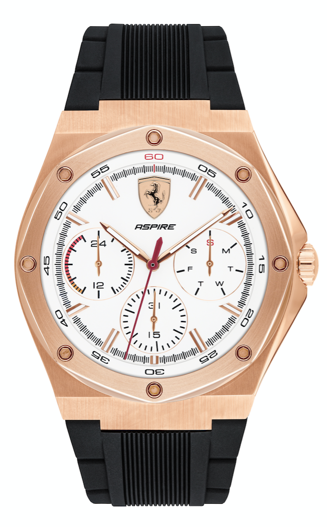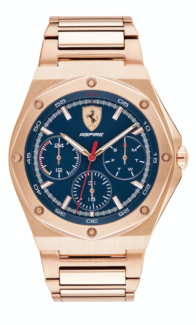 Ferrari Aspire se caracteriza por tener una diseño arriesgado, deportivo y puntual. Su bisel adornado con pernos, evocan a los pernos que tienen los icónicos motores de los autos Ferrari.