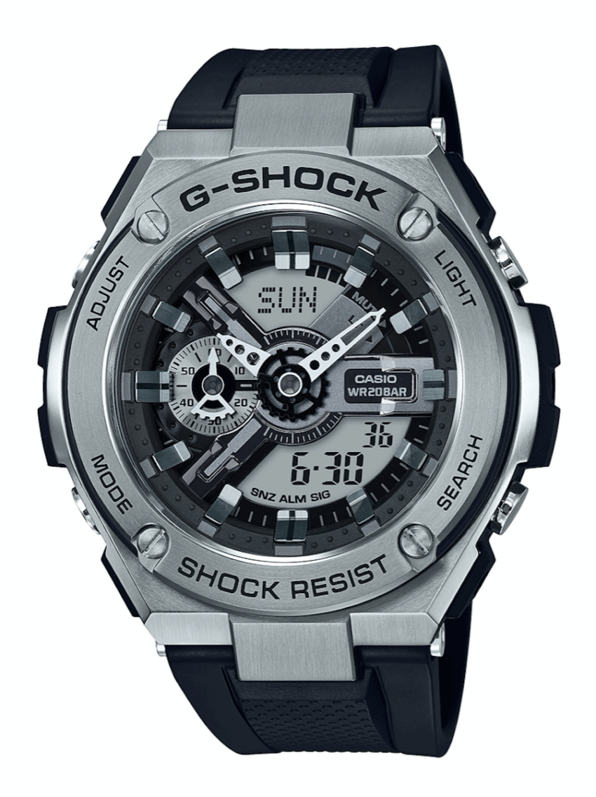 Los nuevo modelos relojeros pertenecientes a la línea de G-Steel, evocan a los colores que fueron utilizados por Mondrian en su obra en óleo llamada “Broadway Boggie Woogie”. Tres diferentes modelos hechos en acero con correa de resina, son los que llevan tonos en negro, rojo y dorado. La serie GST-410 Complex Dial, representa el color de la ciudad con mayor color a la cual escapó el artista durante la Segunda Guerra Mundial, Nueva York. Los relojes GST-410-1A en negro, el GST-410-4A en rojo y el GST-410-9A en dorado se caracterizan por tener un dial multidimensional con sistema analógico y digital.