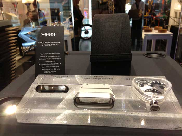 …Durante la semana más importante de la relojería en Ginebra, me dirigí a la M.A.D Gallery, espacio que había conocido únicamente a través de fotografías. Desde la vitrina principal podía observar cada uno de los reconocimientos que, en su corta trayectoria, ha recibido -MB&F- por parte de la industria relojera. Me recibió Eléonor Picciotto, responsable de las relaciones públicas de la marca. Le hablé en inglés y al reconocer mi acento latino –mexicano-, cambió por español, y me sentí como en casa. Platicamos un poco acerca de las maravillosas máquinas y expositores presentes en aquel espacio, sin embargo, Miki Eleta habría de irrumpir en la escena para presentarse, como ahora lo presento a usted, amigo cibernauta: