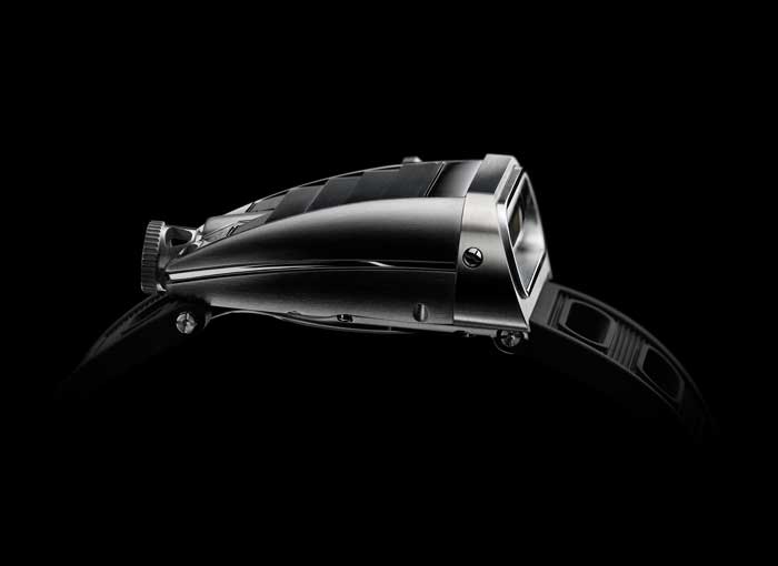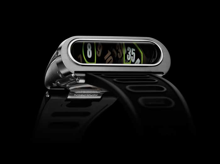 Quise comenzar por citar un par de párrafos de Maximilian, en donde nos explica la idea con la cual surgió su nueva Horological Machine, misma con la cual me identifico, aunque no viví en los años setenta, pues recuerdo el nivel de innovación que se vislumbraba a través de los avances que la ciencia y conciencia permitían durante esa década. Cuando regresé a mi país pasé por el aeropuerto Charles de Gaulle de París, y vi -en la forma de pieza de museo- un avión Concorde. Recordé con ello mi infancia, cuando era niño construía Concorde´s a base de cartulinas y plumones de colores. Tal vez ese mismo impulso llevó a “Max” a la realización del nuevo HM5, inspirado en el chasis y carrocería de un súper auto (Lamborghini Miura), pero su máxima “musa” fue el intrépido Amida Digitrend. Modelo que contaba con una estrecha caja futurista y un indicador vertical digital tipo LED, impulsado por un movimiento mecánico. Desafortunadamente el reconocimiento llegó muy tarde y Amida terminó por ser víctima de la llamada “crisis del cuarzo”.