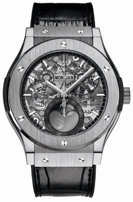 Conocimos las piezas a develar, y se trata de una familia de Big Bang renovada, que incorpora los elementos probados que funcionan en el mercado: Big Bang Unico 45 mm Ceramic Magic Gold, cerámica y bisel de oro irrayable; Unico Bracelet con brazalete intercambiable de caucho y titanio, oro y titanio, titanio y cerámica; de un World Poker Tour sumamente llamativo; de la evolución del Crono retrógrado desarrollado para el Mundial, pero aterrizado para el uso diario; del torbellino con cinco días de reserva de marcha o de la nueva colección Jeans, que sin duda aterrizará en México. En fin, novedades con diamantes, zafiros, esmeraldas, etc, pero además con un “chorro” de pintura evidenciando su predilección por el arte pop, pero sin duda nuestros favoritos fueron el Classic Fusion de 45 mm en color azul (oro o titanio), el Aerofusion Moonphase con carátula desnuda y el Spirit of Big Bang All Black.