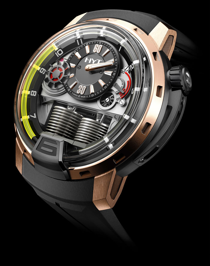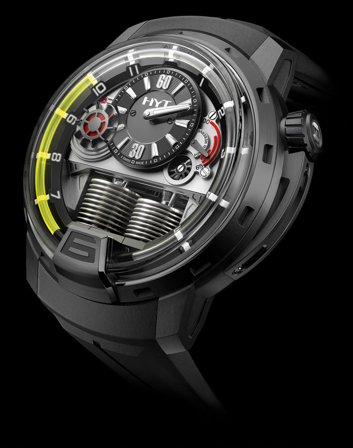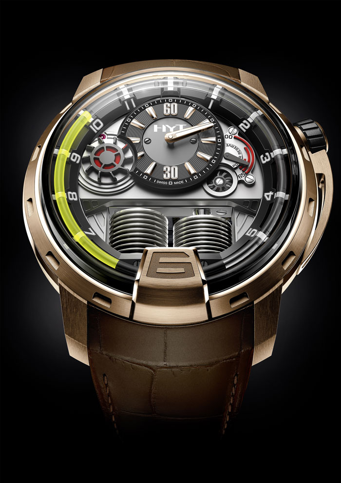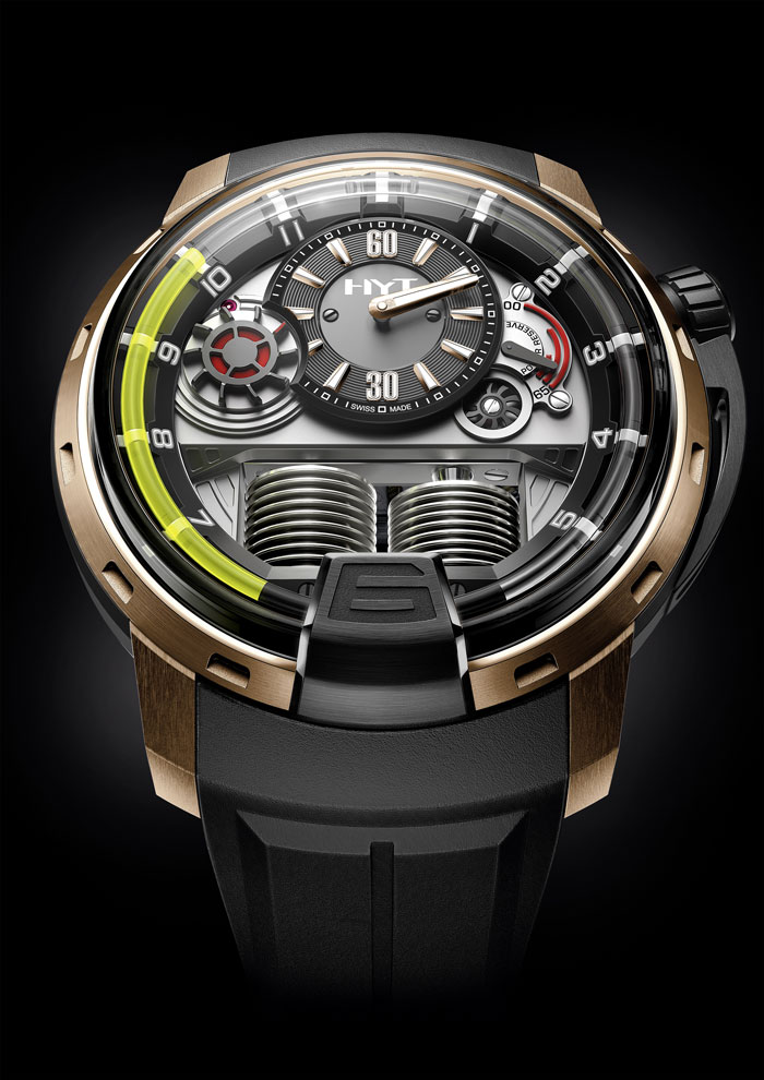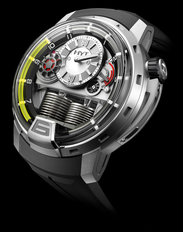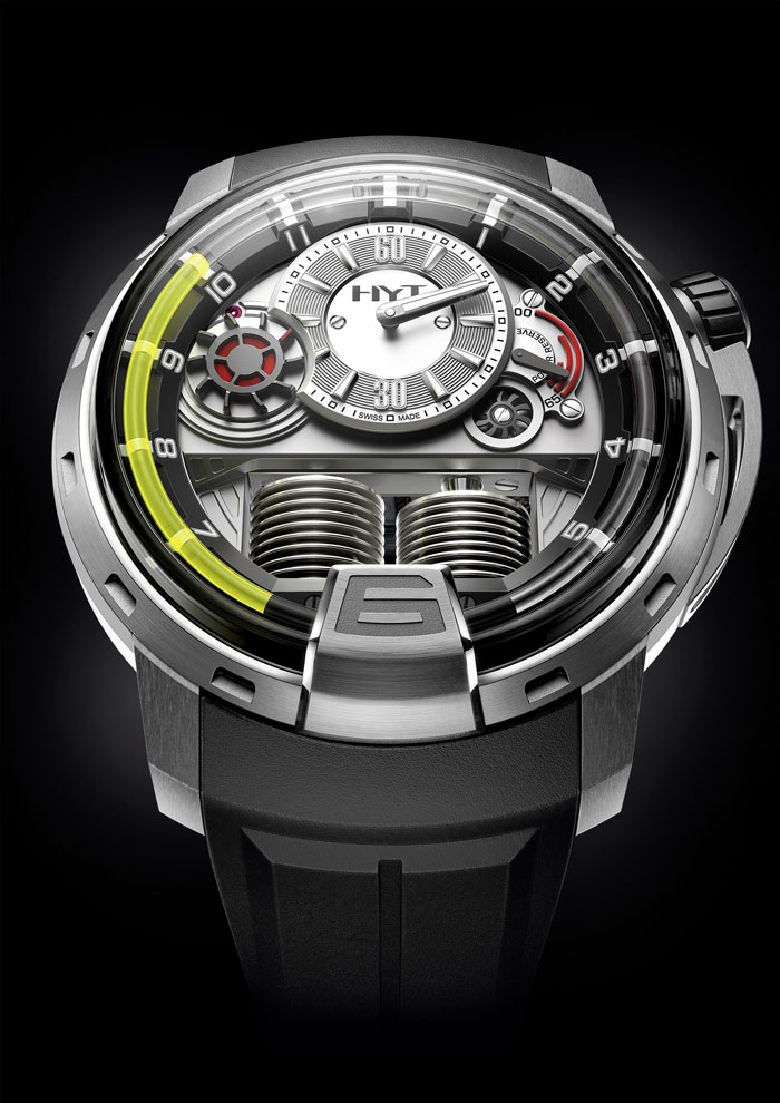 Hydrological Technology, así se define el nombre HYT, cuyo ADN y espíritu pioneros, han elevado a este –concepto totalmente único– a conquistar a coleccionistas y mercados alrededor del mundo. De reciente creación, dado a que sus inicios datan del año 2002 cuando Lucien Vouillamoz decidió imaginar la idea de construir un reloj que incorporara líquidos y horología tradicional. Una utopía que necesitaba una solución mecánica posible, y que años más tarde, el –también– ingeniero nuclear especializado en termodinámica, decidiera replantearse en cuanto a la concepción inicial, añadiendo dos depósitos flexibles conectados al mecanismo, no obstante el proyecto e idea geniales, debían ser apuntalados por el financiamiento y experiencia de algún personaje decidido a hacerlo posible. Fue este momento de inflexión en el cual Lucien encontró en su amigo Patrick Berdoz a su socio perfecto, un emprendedor que posteriormente contactara a Emmanuel Savioz, cuyo dominio y experiencias en dicha tecnología al servicio de la medicina, fungieron como “mecenas” para el proyecto desarrollado durante un año y presentado en el 2010, había nacido HYT.