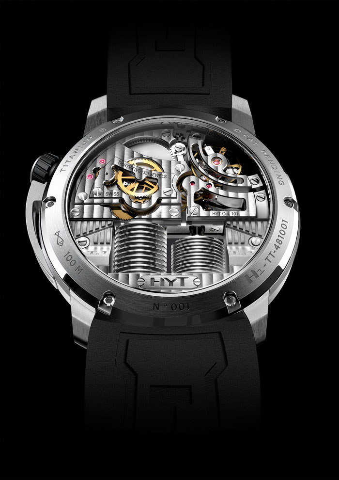 Así pues, tras el primer instrumento de relojería surgieron dudas y complicaciones, y es que, de acuerdo a las propias palabras de Lucien: “Hemos puesto al diablo en el cajón”. ¿Quién iba a imaginar que los líquidos se aplicarían a un instrumento de precisión mecánica cuando uno de los mayores problemas de esta disciplina es la hermeticidad. Es así que las soluciones debían llegar en duplas, una para el movimiento y la ejecución de la presión correcta, y otra en el aspecto químico de los fluidos utilizados, ya que uno presenta una coloración y el otro es transparente, lo que nos abre a la pregunta lógica: –¿Cuál es su composición química y cuál es el parámetro de precisión de un HYT?– A lo que Lucien responde…