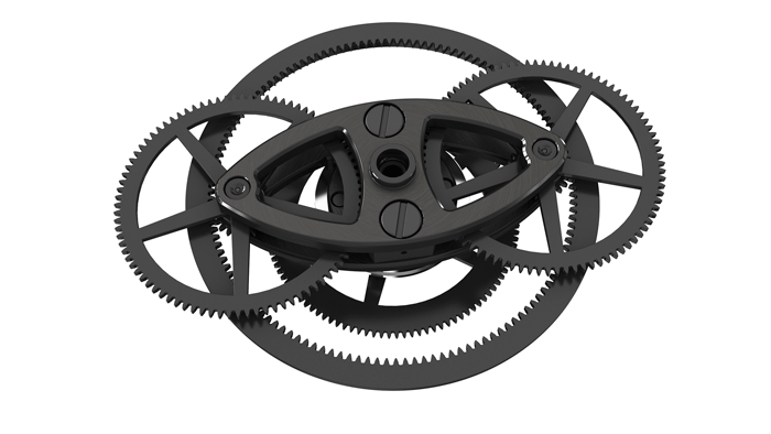 1.- Caja al vacío. Con el fin de proteger al oscilador de la resistencia al aire a medida que este late, el interior de la caja -elaborada en una sola pieza a base de CeramystTM- fue sellada al vacío.