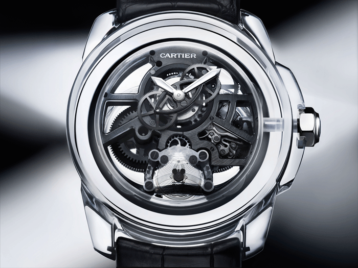 En el 2009 Cartier sorprendía con el primer reloj libre de ajustes y lubricación: el ID One. En el 2012, luego de cinco años de investigación y desarrollo, lo hace nuevamente con una pieza de alta eficiencia que reduce a la mitad el consumo energético y almacena 30% más energía, lo que se traduce en 32 días de reserva de marcha.