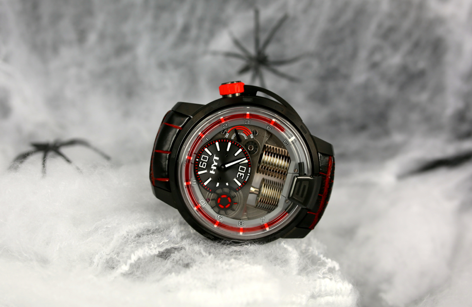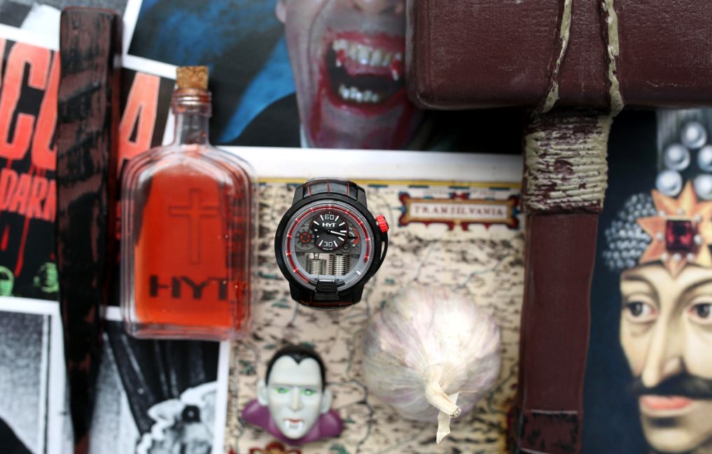 Todavía no es Halloween y ya estamos brindando sonrisas y trucos a los infantes –que llevamos dentro–, y es que HYT, la marca de la horología fluida, ha utilizado la creatividad para exhibir su máquina H1 con un disfraz que le habría sentado muy bien al Conde Drácula.