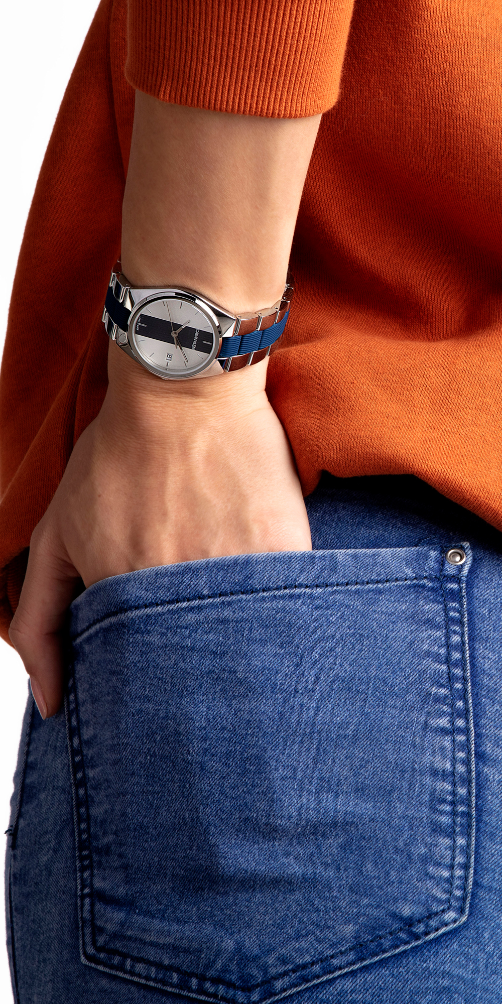 Dinámico y deportivo, así es su diseño. Totalmente atemporal e ideal para cualquier ocasión. Para ella, la marca de Le Locle ofrece una carátula madreperla con índices diamantes y fabricación bicolor en acero y acero PVD oro amarillo. Y para él un diseño sport chic con carátula azul océano y totalizadores a las 10, 2 y 6 horas, una de las mejores parejas de relojes si tu estilo es 100% deportivo.