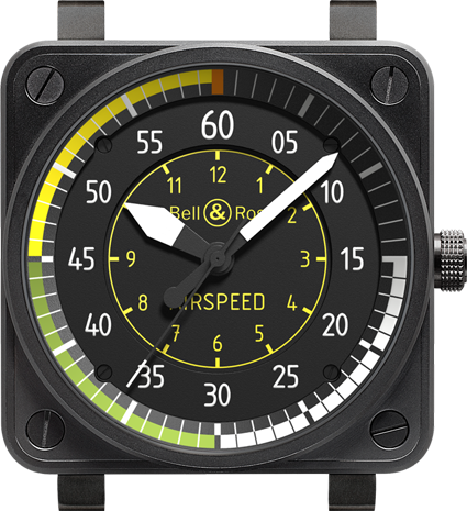 Entre las peculiaridades de este reloj destacan la carátula negra que se encuentra desplazada 50° hacia la derecha, así como los grandes números blancos. Ambas características, indispensables en los instrumentos de vuelo, facilitan la legibilidad en la penumbra o en las turbulencias.