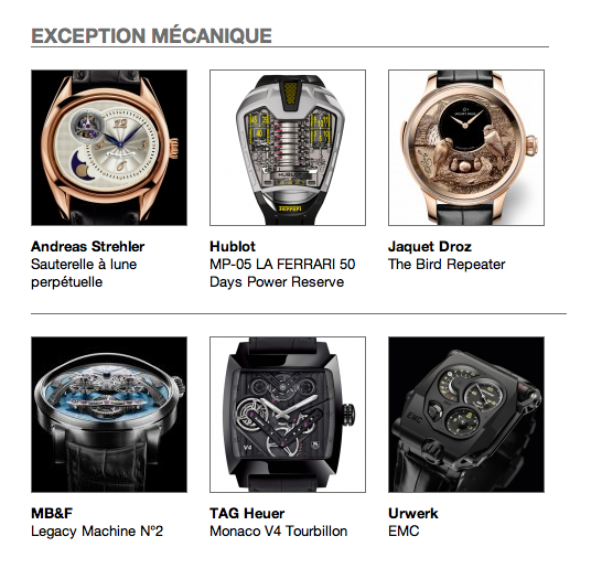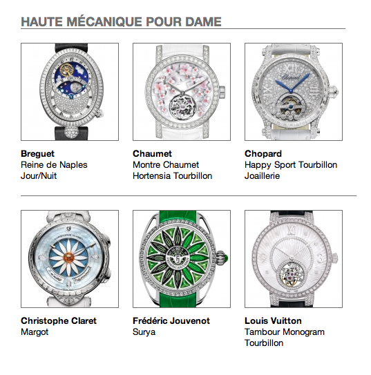 Desde hoy deseamos la mejor de las suertes a cada uno de los participantes, de quienes destacamos la participación de: Breguet con seis nominaciones, Montblanc con cuatro, TAG Heuer con tres, Blancpain con cuatro, entre algunas otras como Christophe Claret, que llama la atención en las categorías de sonería, su especialidad, y complicación femenina con su extraordinario Margot, felicidades.