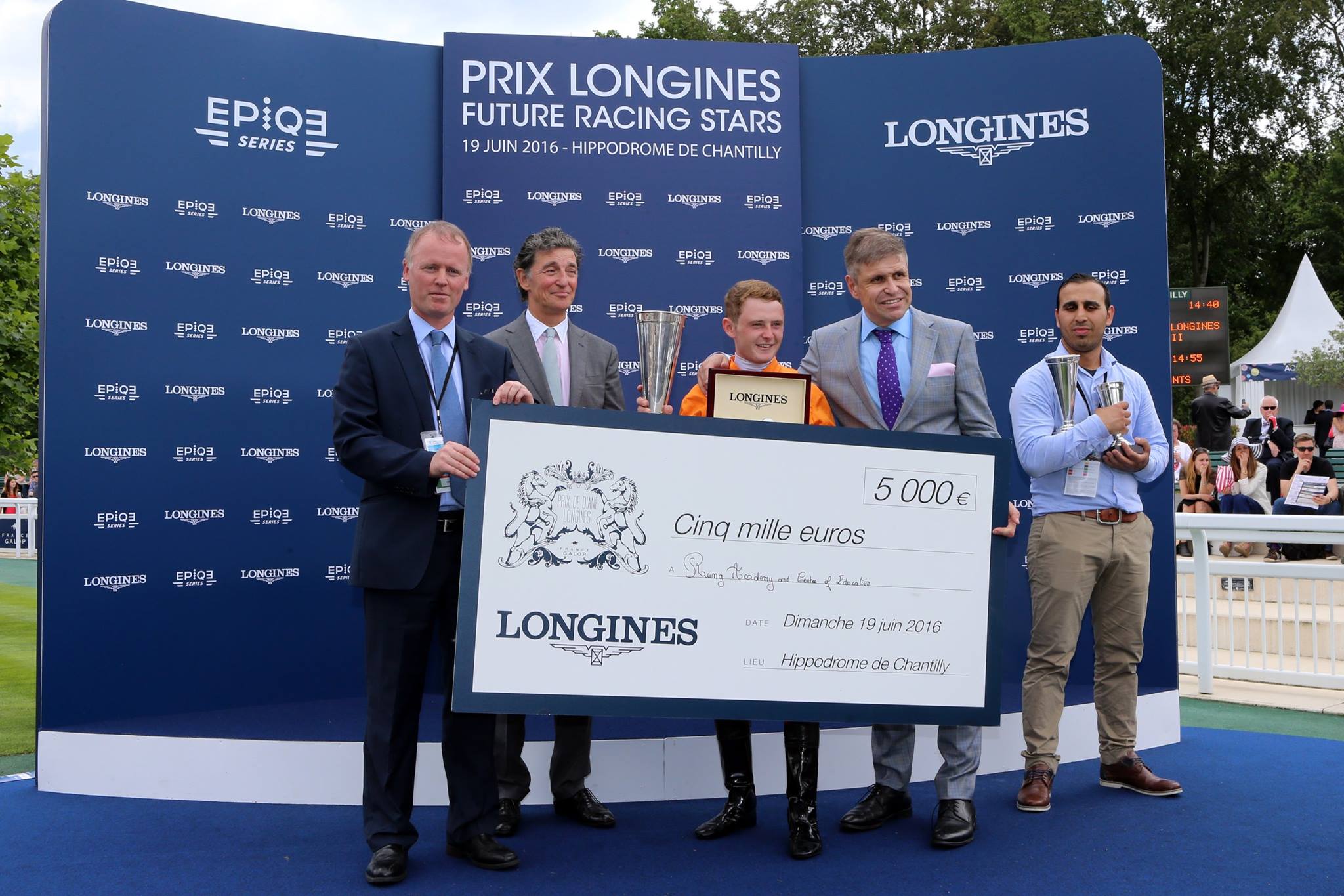 Una de las competencias de velocidad ecuestre más reconocidas del Viejo Continente tuvo lugar este domingo 19 en el Hipódromo de Chantilly, Francia, y el resultado más sonado tuvo como ganadores a: La Cressonnière, a su propietario, jinete y entrenador, quienes fueron reconocidos con sendos relojes de Longines de la Master Collection.